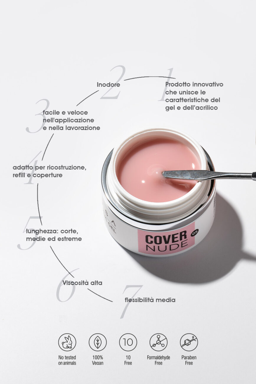 Acrylic Gel รจ un prodotto ibrido rivoluzionario che unisce le caratteristiche fondamentali del gel e dellโacrilico, in particolar modo la facilitร di lavorazione dellโacrilico e la polimerizzazione in lampada del gel. Grazie alla sua consistenza il prodotto non cola e offre la possibilitร di essere lavorato con facilitร e precisione contemporaneamente su tutte le unghie. Puรฒ essere utilizzato per effettuare ricostruzioni, allungamenti e refill, frammenti mancanti dellโunghia, ricostruzioni per unghie onicofagiche. La speciale formula rende lโunghia piรน forte, piรน flessibile e piรน leggera degli acrilici e dei gel tradizionali. Il risultato รจ un effetto totalmente naturale e una lunghissima durata per oltre 21 giorni. Perfetto per la tecnica del french inverso. Acrylic Gel รจ molto resistente ma nello stesso tempo flessibile sullโunghia. Pinzabile e adatto a tutti i tipi di lunghezze. Pochissima polvere di limatura. Ideale per effettuare correzioni su unghie grifotiche senza dover utilizzare le Nail Form. Non genera calore in lampada. La sua neutra colorazione nude molto coprente abbinata a una viscositร altissima e molto facile da lavorare si combina perfettamente con la sua resistenza per dei trattamenti a lunga durata. ย Per uso professionale.