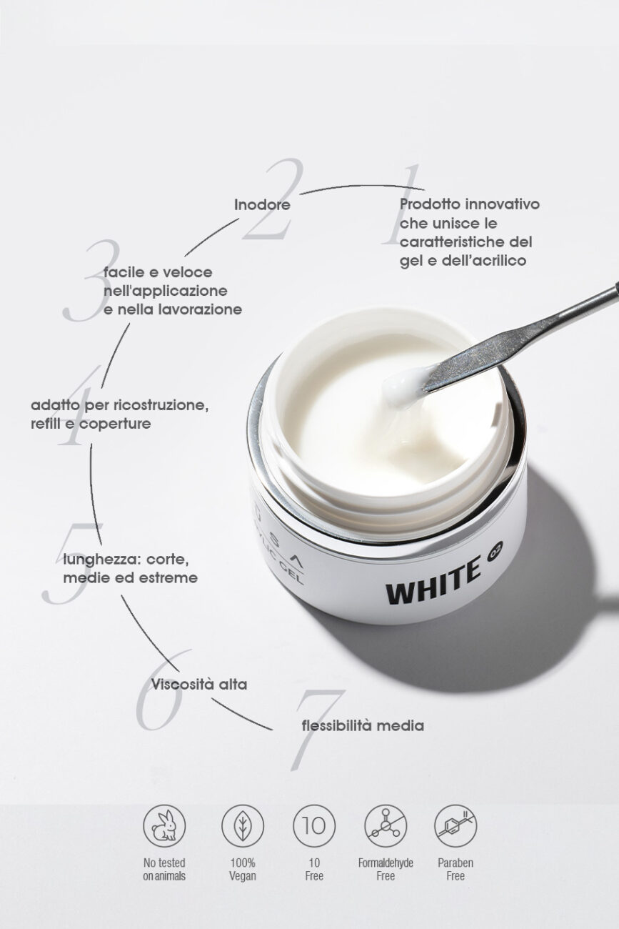 La sua intensa colorazione bianca abbinata a una viscositร altissima e molto facile da lavorare si combina perfettamente con la sua resistenza per dei trattamenti a lunga durata. ย Per uso professionale.