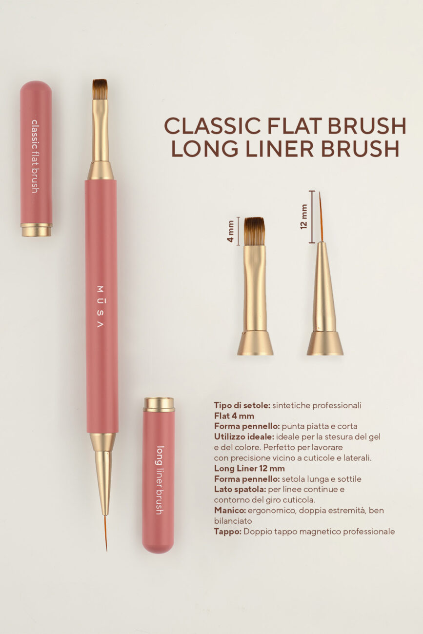Ilย Double Brush โ Classic Flatย Long Linerย รจ lo strumento 2-in-1 pensato per garantireย massima precisione e fluiditร , sia nellaย stesura del prodottoย che nellaย realizzazione di linee grafiche e decorazioni complesse.