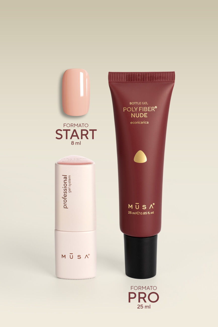 unendo la praticità del flacone con le prestazioni di un gel professionale rinforzato con fibre polimeriche.