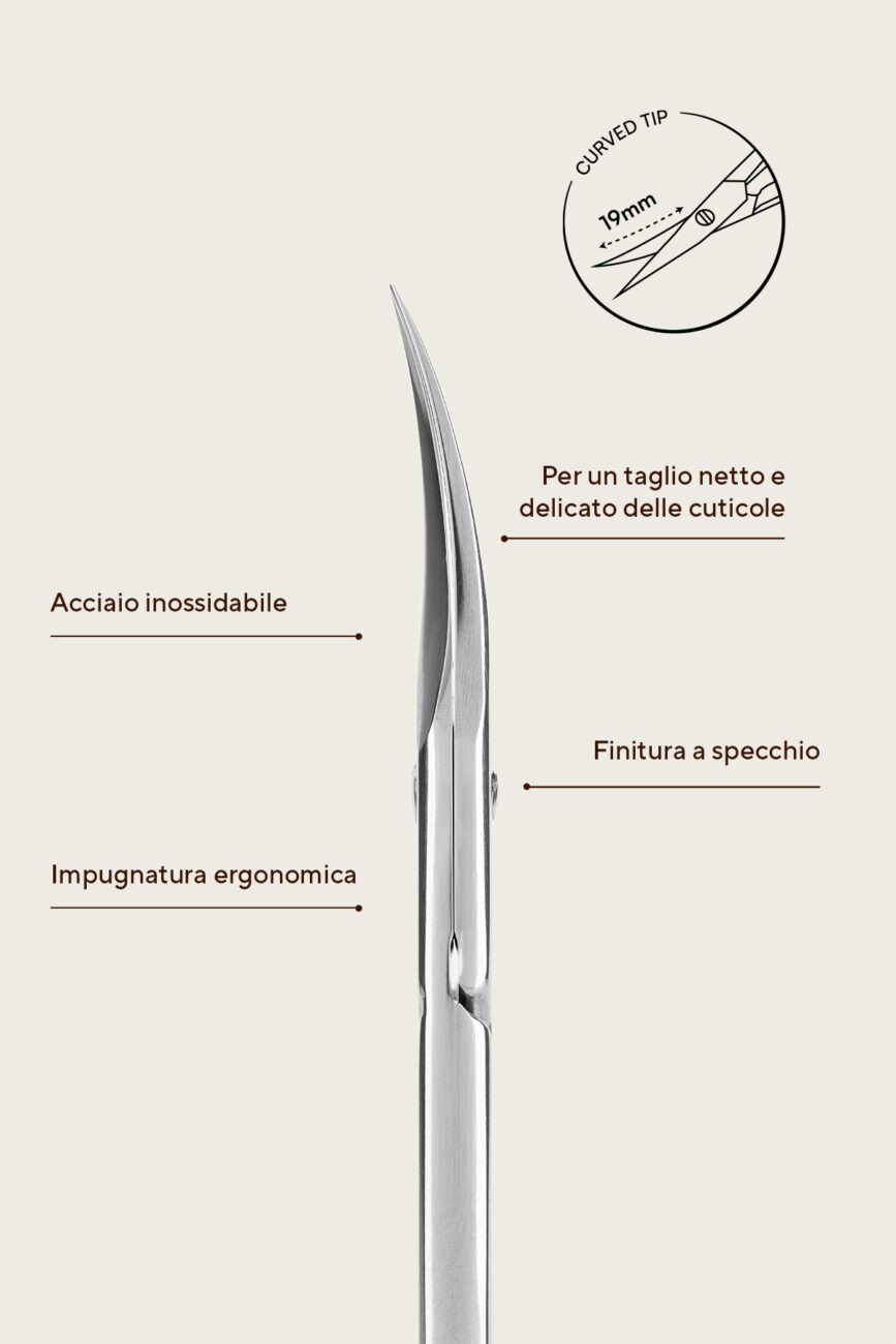 Forbicine per cuticole lama 19mm , strumento di precisione per la rimozione delicata e accurata delle cuticole in eccesso, grazie alle sue lame curve.