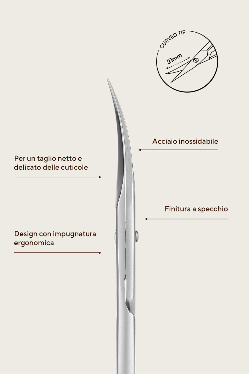 Forbicine per cuticole lama 21mm , strumento di precisione per la rimozione delicata e accurata delle cuticole in eccesso, grazie alle sue lame curve.