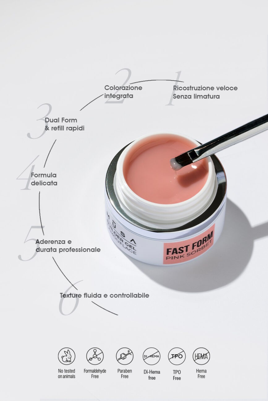 Fast Form Gel รจ un gel costruttore autolivellante, pensato per velocizzare il lavoro in salone e garantire un risultato duraturo e professionale.