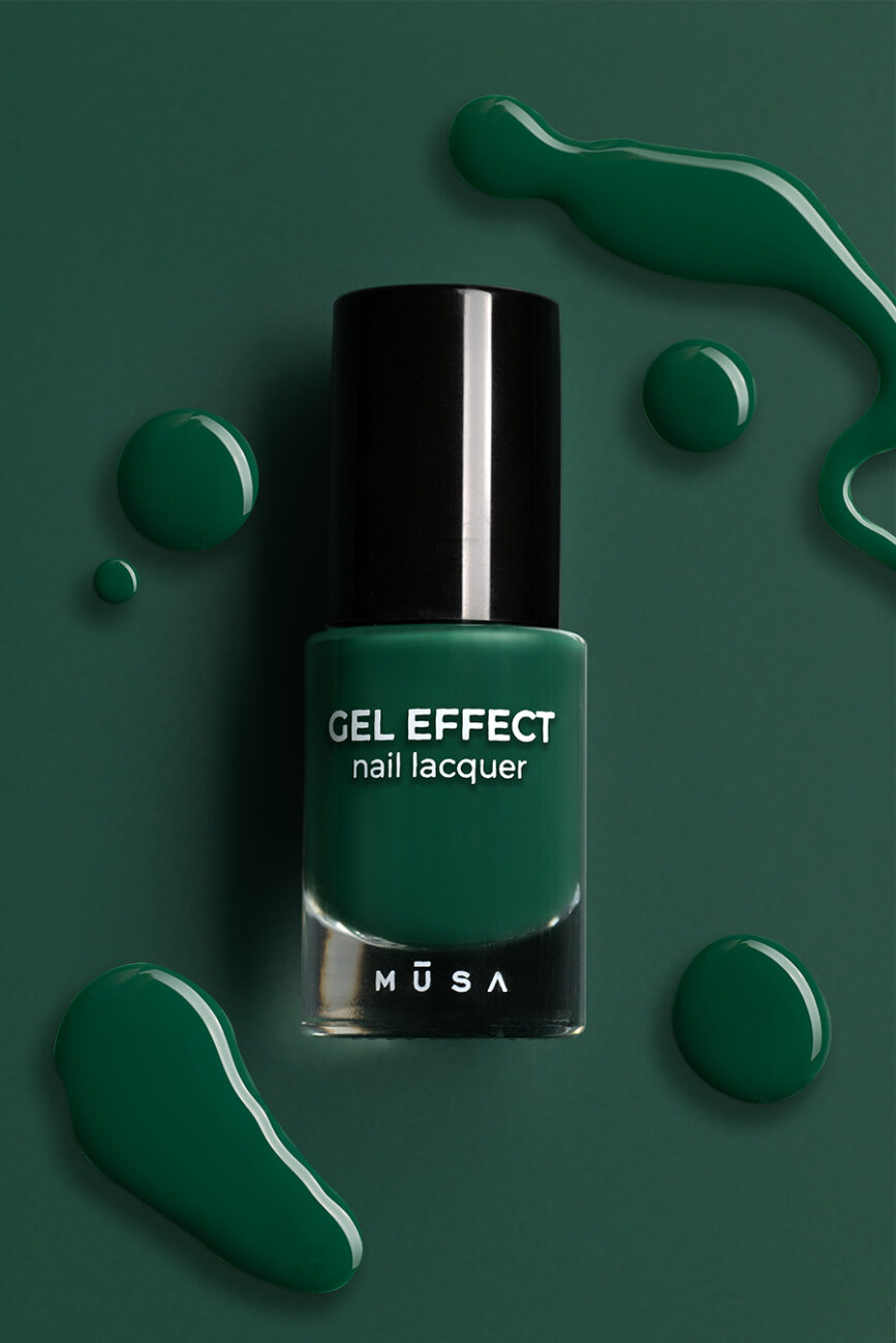 Smalto gel lucido di qualitร  professionale color verde bosco, per manicure senza polimerizzazione in lampada UV.