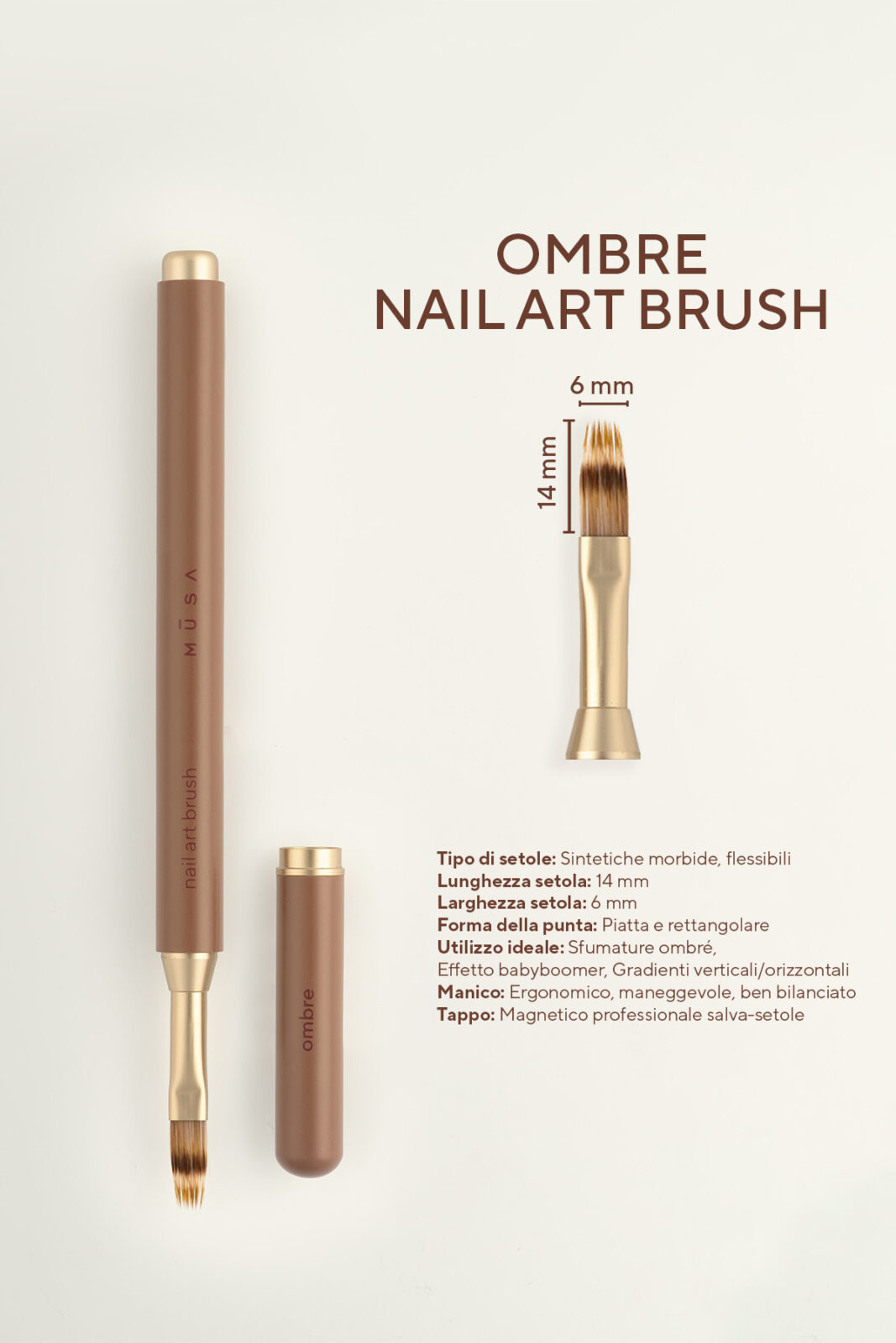 Come tutta la linea Musa, รจ dotato di un tappo magnetico professionale, che protegge le setole e ti consente di tenerlo sempre ordinato sulla tua postazione di lavoro.