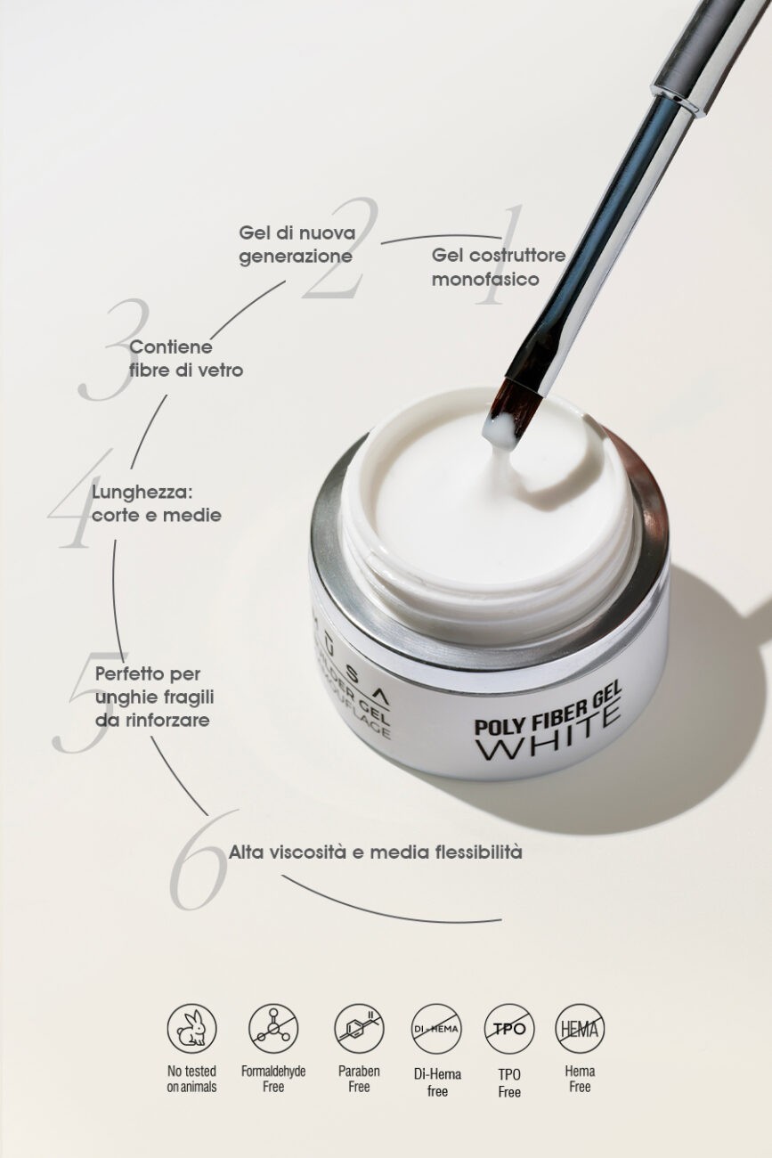 Poly Fiber Gel รจ un gel costruttore monofasico innovativo, arricchito con microfibre polimeriche, progettato per rinforzare, proteggere e modellare anche le unghie piรน sottili o fragili.
