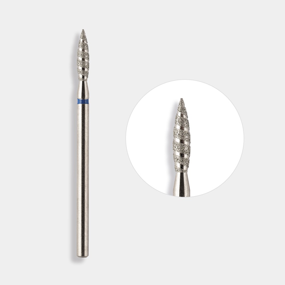 Punta diamantata tornado blu โˆ…25 รจ ideale per effettuare la dry manicure ย sulle mani con faciltร  grazie alla sua forma a spirale.